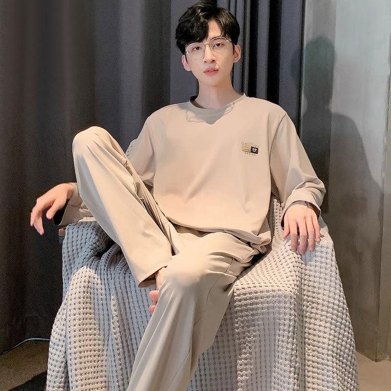 Мужской пижамный комплект с длинным рукавом из имитации хлопка для подростков - Весна, Осень и Зима - Домашняя одежда больших размеров. Extra Large Plus (XXXL)