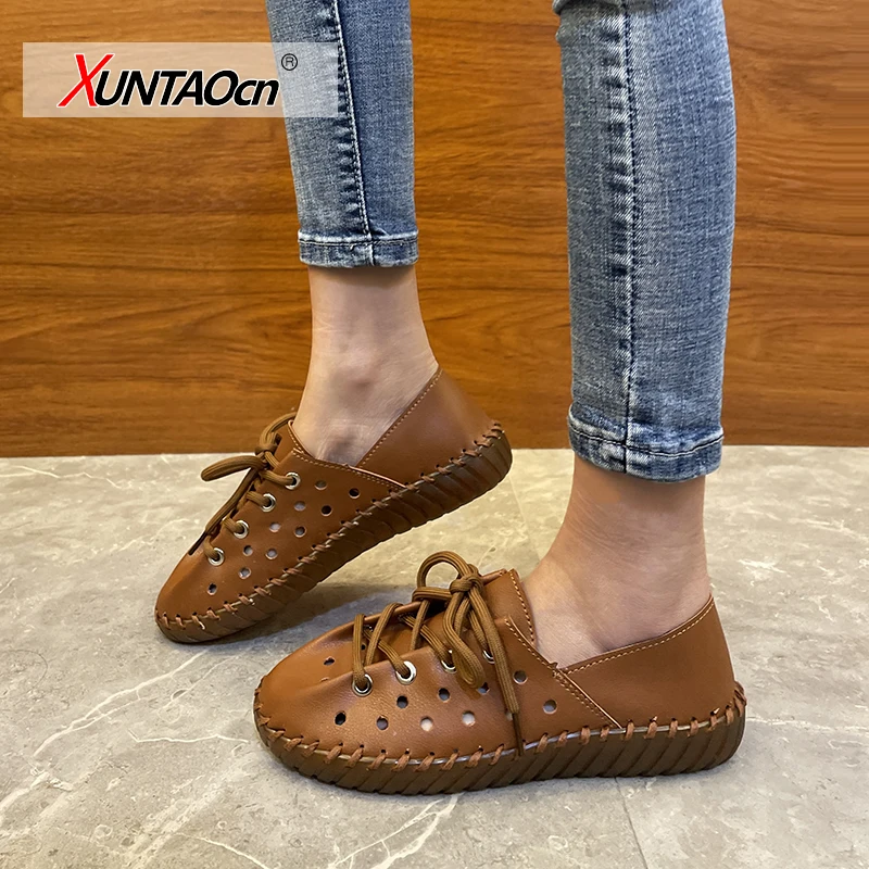 Женские дизайнерские дышащие кроссовки оксфорды на плоской подошве, женские повседневные Мокасины из спилка на шнуровке, лоферы с вырезами...