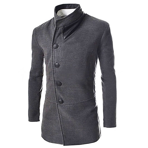 Муж. На выход / Офис Весна & осень Длинная Тренч, Однотонный С отворотом Длинный рукав Хлопок / Полиэстер Пэчворк Черный / Серый L / XL / XXL / Двубортный крой