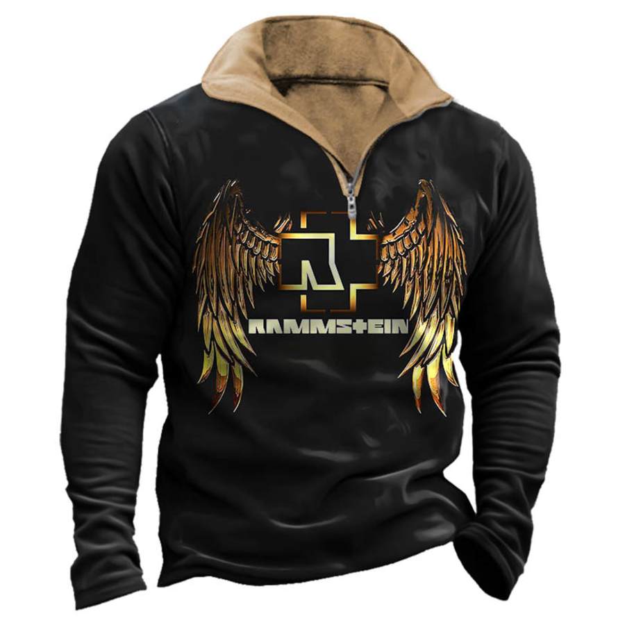 Муж. Толстовка Застежка-молния на четверть Тяжелый металл Рок Музыка Крылья Винтаж Повседневные Верхушки Черный
