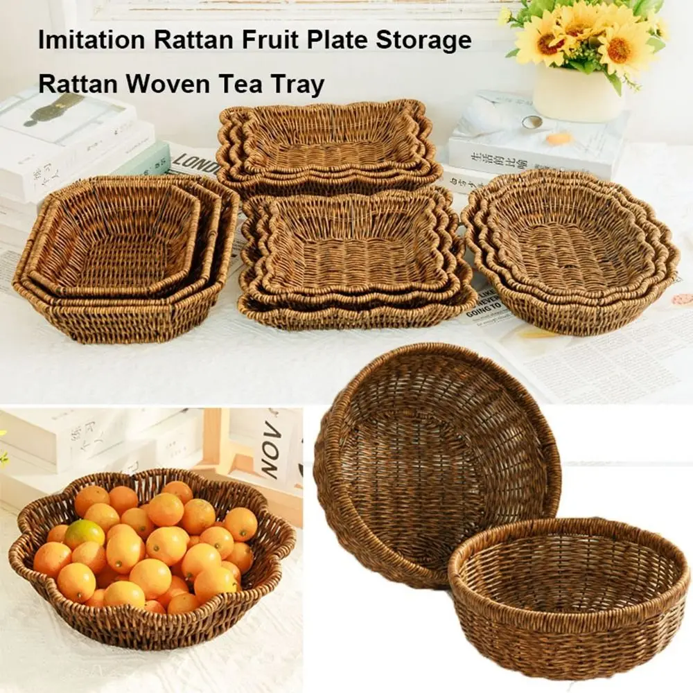 Мультистильная имитация ротанга, фруктовая тарелка, ретро-тканая ручная тарелка для хранения, плетеный чайный поднос из ротанга, закуски для пикника, разные корзины