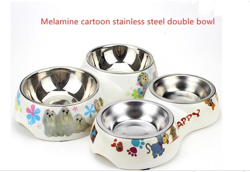 Мультфильм Амин миска для собаки нержавеющая сталь раковина с двумя чашами типа «два-в-одном» Собачья Миска нескользящая кошачья миска пищ...