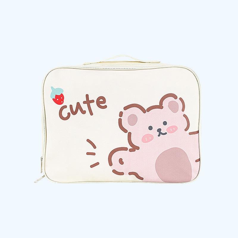 Мультяжная дорожная сумка большой вместимости для хранения косметики и одежды, милая мультяшная печать, износостойкая, портативная, для путешествий на открытом воздухе бежевый