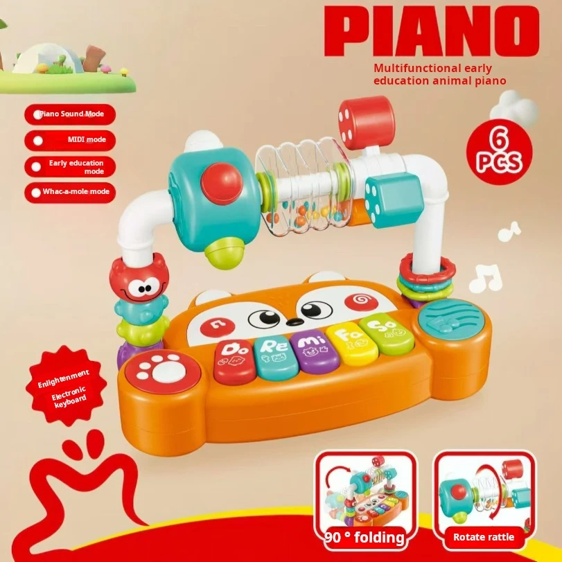 Мультяшная детская многофункциональная головоломка для раннего образования, электронная головоломка с изображением животных, звук Цинь, свет, музыкальный пресс, вращающаяся музыкальная игрушка