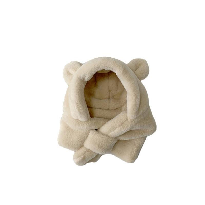 Мультяшная детская плюшевая шапка-шарф зимняя детская шапка из искусственного меха шарфы с капюшоном милые медвежьи ушки теплые ветрозащитные шапочки для девочек и мальчиков бежевый