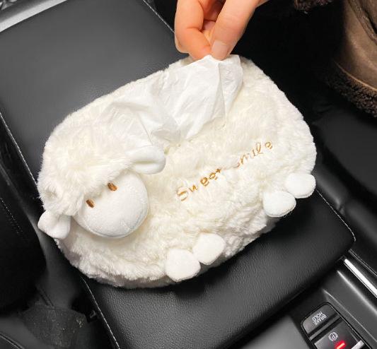 Мультяшная коробка для салфеток в виде автомобиля, креативная маленькая овечка и свинья, подвесная коробка для бумаги, ящик для бумаги, симпатичные принадлежности для украшения интерьера автомобиля