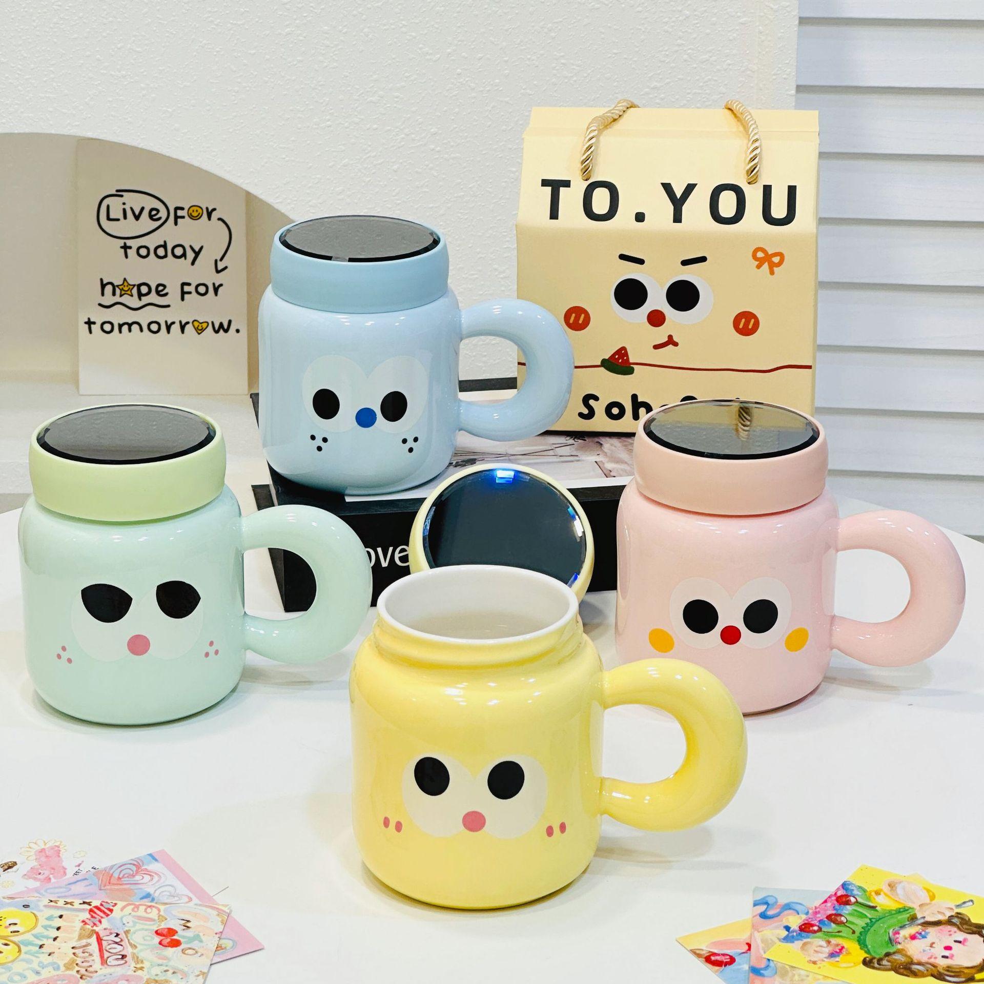 Мультяшная кружка «Большой рот» с улыбающимся лицом, милая керамическая чашка с крышкой, небольшой подарок, парная чашка для воды, чашка с высокой термостойкостью, студенческая 400ML