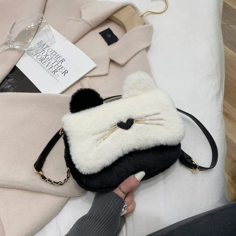 Мультяшная милая плюшевая сумка с кошкой, женская сумка на цепочке, ручная сумка на плечо, женская сумка на плечо, плюшевая кошка, универсаль...