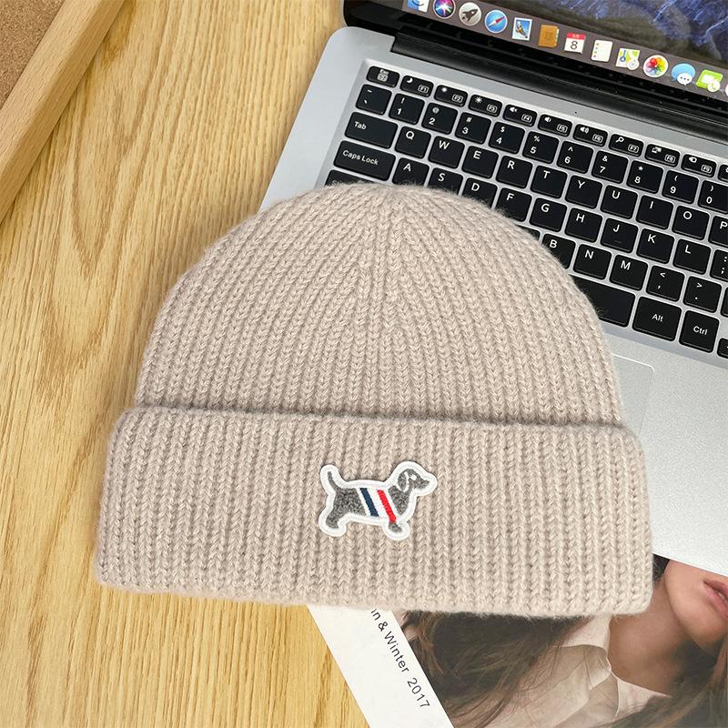 Мультяшная нашивка с щенком, вязаная шапка, мужская зимняя, большой обхват головы, теплая шапка от холода, студенческая, универсальная, облегающая голову, шерстяная шапка One Size