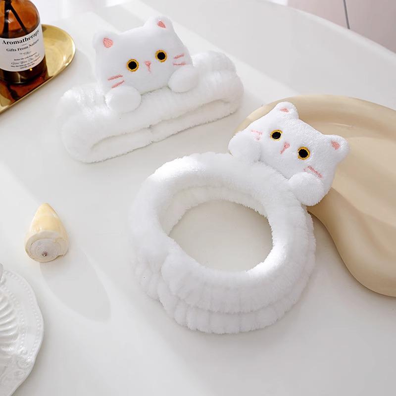 Мультяшная плюшевая повязка на голову с кошачьими ушками для женщин - Нескользящая резинка для умывания или нанесения маски