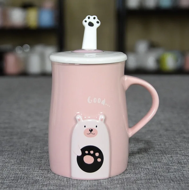 Мультяшная чашка на заказ, рельефная керамическая чашка, милый мультяшный медведь, молочная кофейная чашка, чашка для завтрака