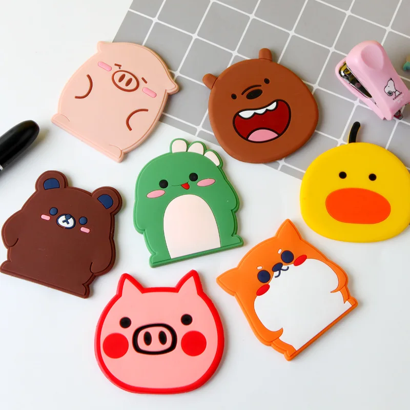 Мультяшное мини-зеркало, портативное зеркало для макияжа, милый подарок для девочек, силиконовое фиксирующее компактное карманное зеркало ...
