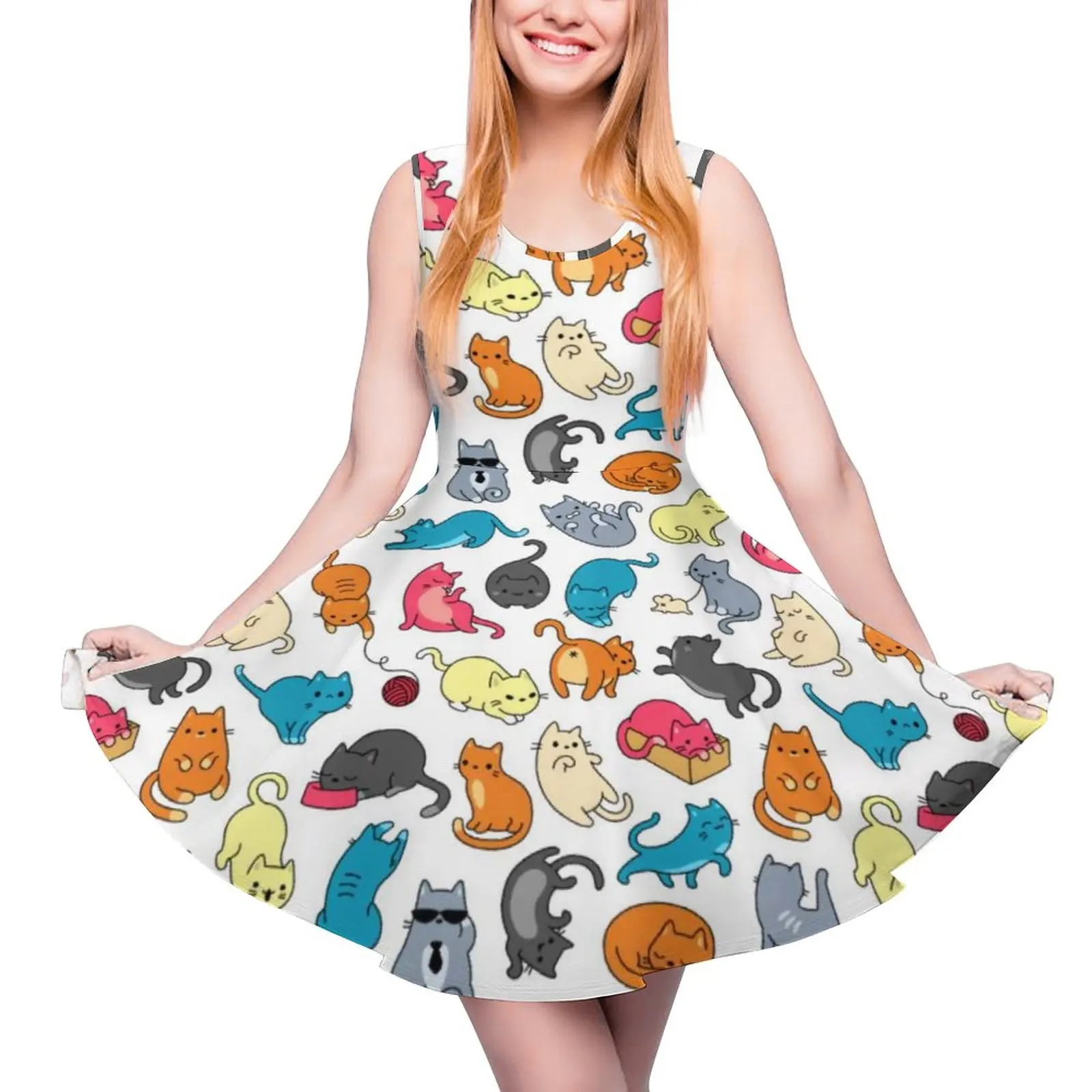 Мультяшное платье с мемом, милые повседневные платья с рисунком кошек, женское милое платье для скейта, летняя одежда с принтом, большой раз...