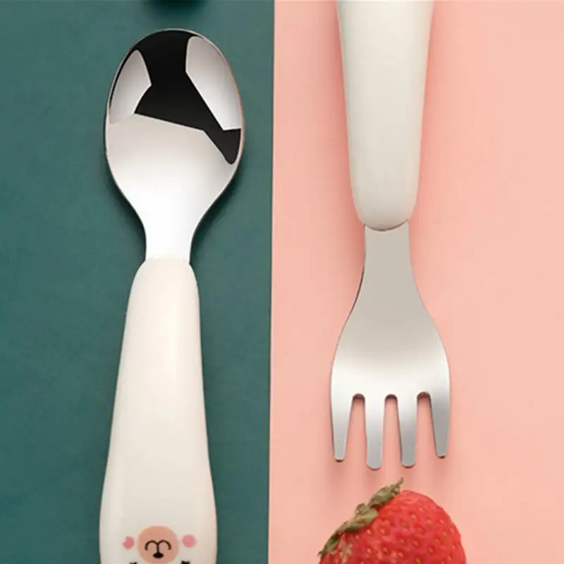 Мультяшные Детские вилочные ложки, тренировочная ложка, лижущая вилка, ложка, вилка, ложка для обучения еде, портативная Вилочная ложка для детей