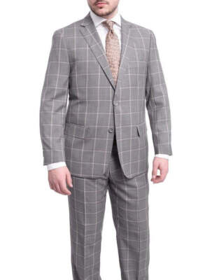 Мужской классический костюм серого шага с серым и темно-серым оконным стеклом на двух пуговицах шерстяной костюм, Серый