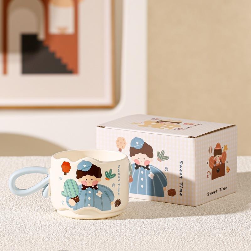Мультяшные мальчик и девочка Керамическая кружка Высоко выглядящая штабелируемая чашка Сувенирная подарочная чашка Лучшему другу Кофейная чашка 380ml