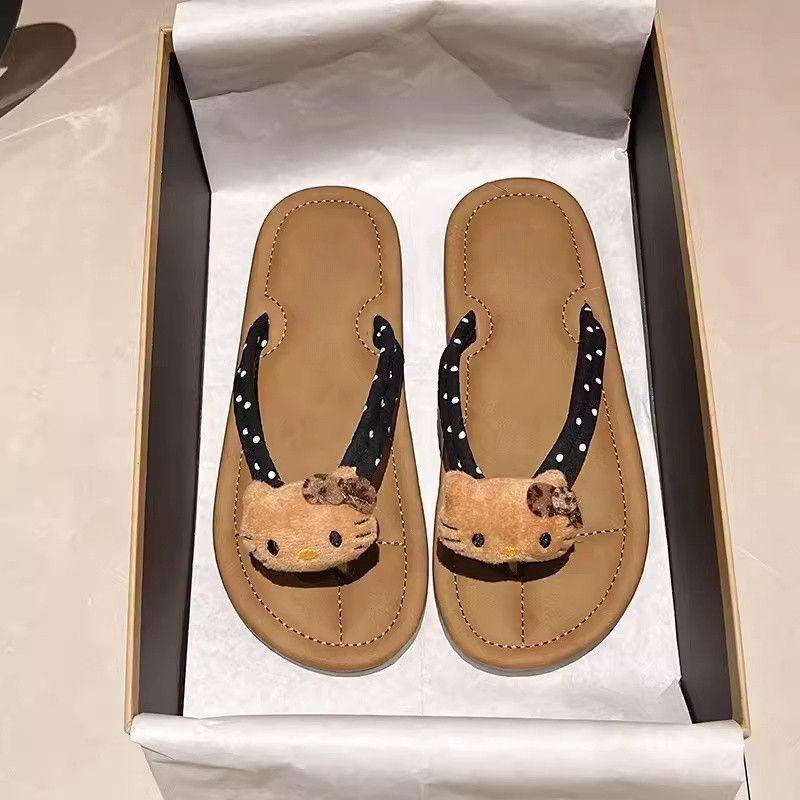 Мультяшные милые супермягкие носить плоский каблук милые классические универсальные в горошек Hello Kitty шлепанцы сланцы с перемычкой для пальца женские 40