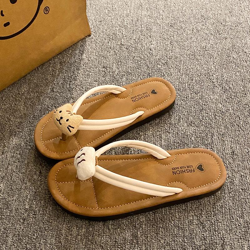 Мультяшные милые шлепанцы с котиком женские 2025 лето студенческие уличные тапочки пляжные повседневные с пальцем крутые шлепанцы 40