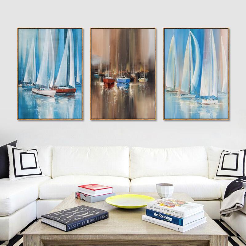 Мультяшные модульные картины для украшения дома, полярная ледовая лодка, абстрактная картина на холсте, ручная роспись, плакат без рамки