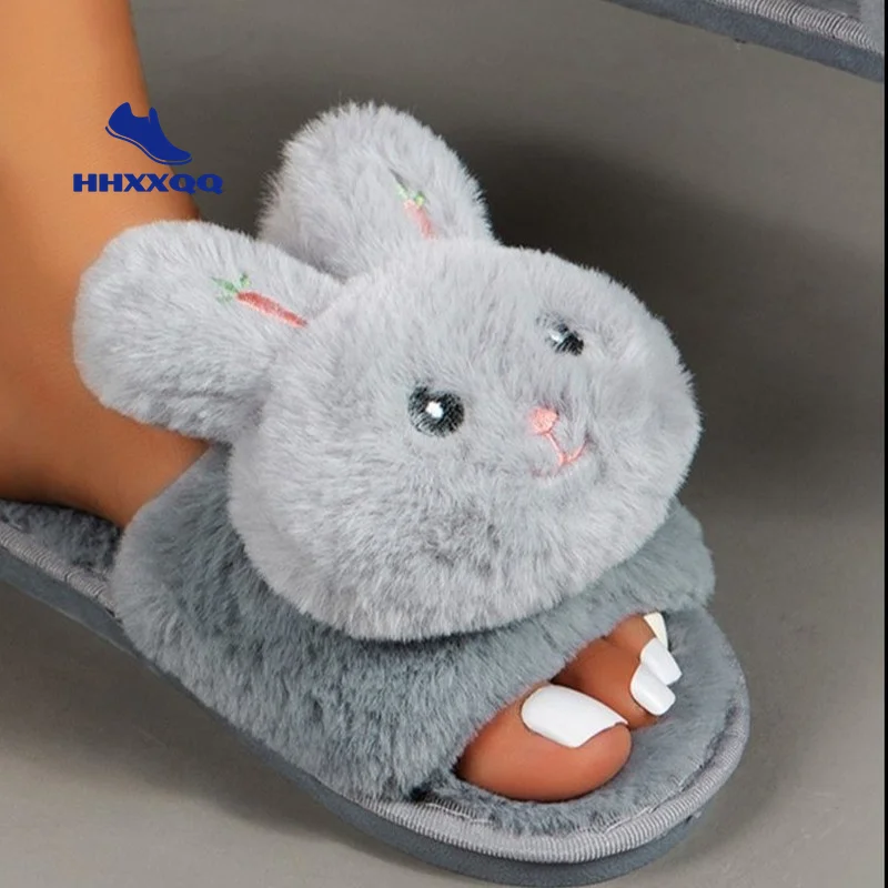 Мультяшные новые стильные хлопковые тапочки с кроликом, забавная Нескользящая домашняя хлопковая обувь, подарки, плюшевые тапочки, зимняя ...
