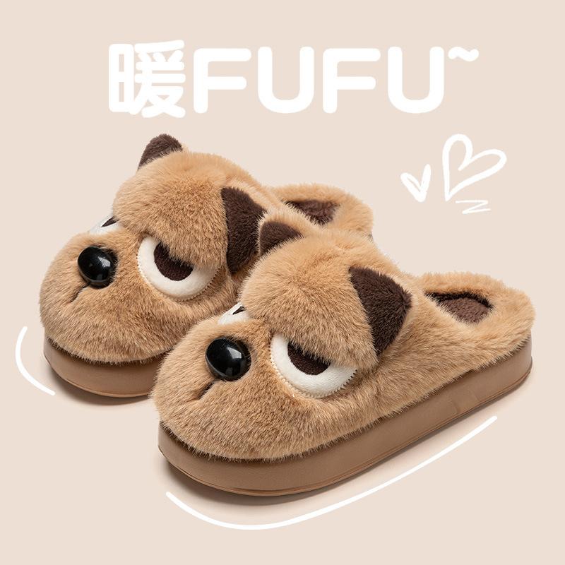 Мультяшный Злой Пес Хлопковые Тапочки для Дома Женские Плюшевые Хлопковые Тапочки Мужские Теплые Туфли Баотоу Шлепанцы Женские 36-37 хаки