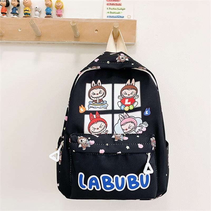 Мультяшный Милый Рюкзак с Принтом Лабубу Студенческий Универсальный Большой Вместимости Школьный Рюкзак Детский Портативный Дорожный Рюкзак Подарок чёрный
