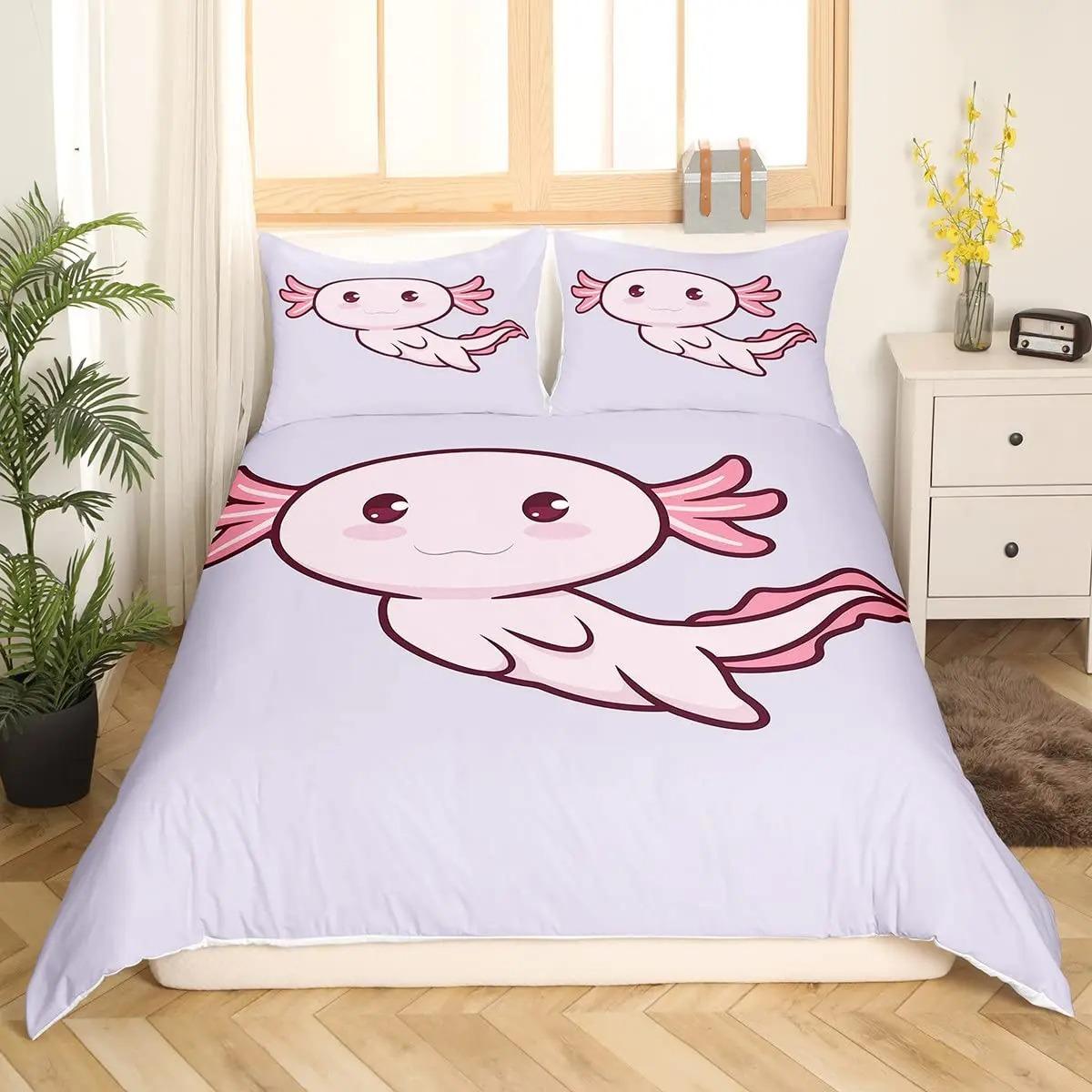 Мультяшный аксолотль милый морской зверь рептилия комплект постельного белья для мальчиков и девочек близнецов двуспальный пододеяльник наволочка кровать дети взрослые 70x133cm 2pcs