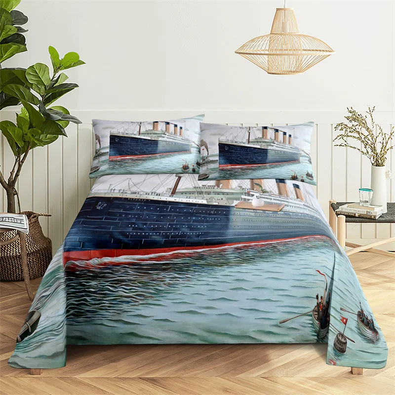 Мультяшный корабль дорожное постельное белье домашнее цифровое печать полиэстер простыня с наволочкой печать простыня