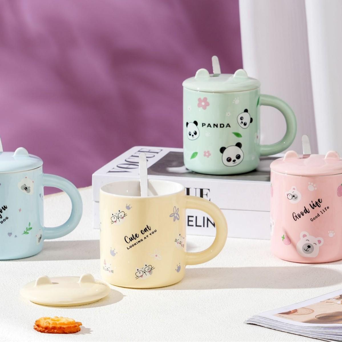 Мультяшный медведь с крышкой, рельефная керамическая чашка, простой набор, милая кружка, большая емкость, термостойкая, студенческая чашка для воды 400ML