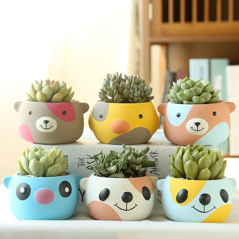Мультяшный милый медведь, суккулент, керамический цветочный горшок, креативная ручная роспись, для балкона, домашний маленький горшечный Ц...