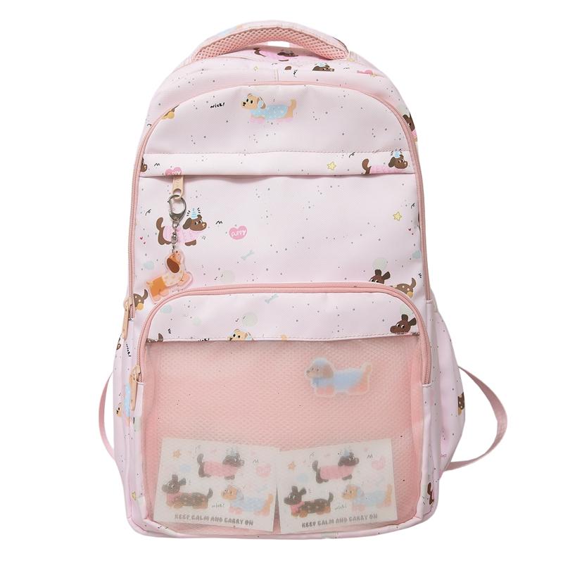 Мультяшный студенческий школьный рюкзак для девочек с принтом животных, рюкзак большой вместимости для учеников средней школы розовый
