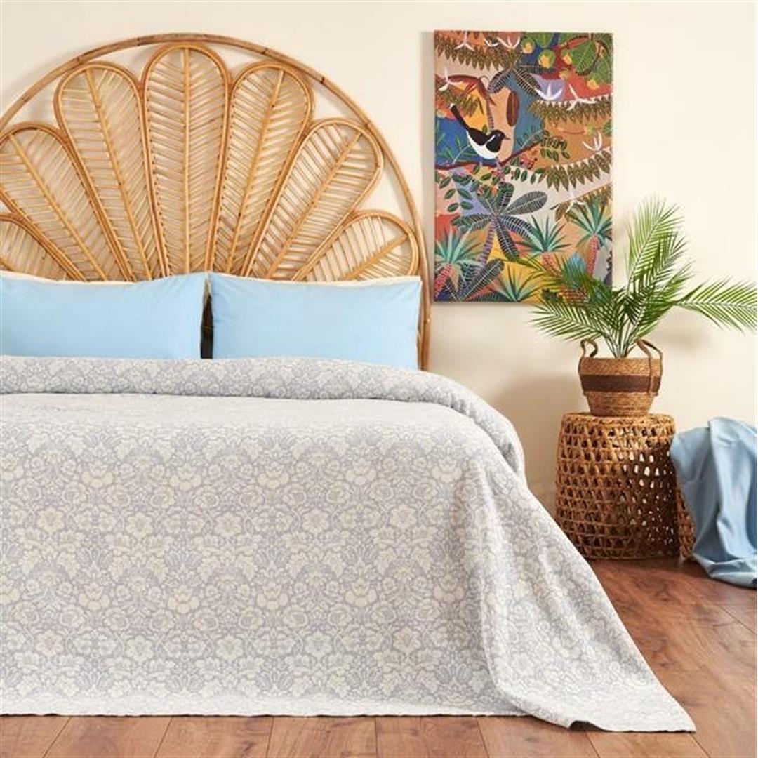 Муслиновое двуспальное покрывало Nuvomon с цветочным принтом, синее, 220x230 см