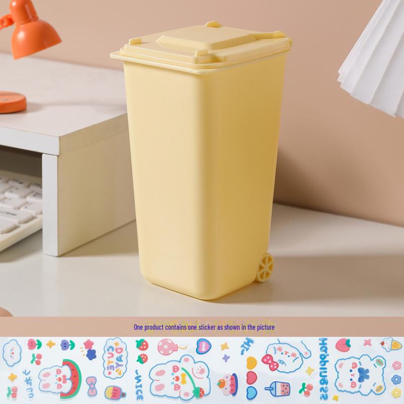 Мусорное ведро для рабочего стола с рисунком и держателем для ручек с крышкой - Креативная маленькая настольная корзина для мусора и ведро для хранения 10*6.5*16cm