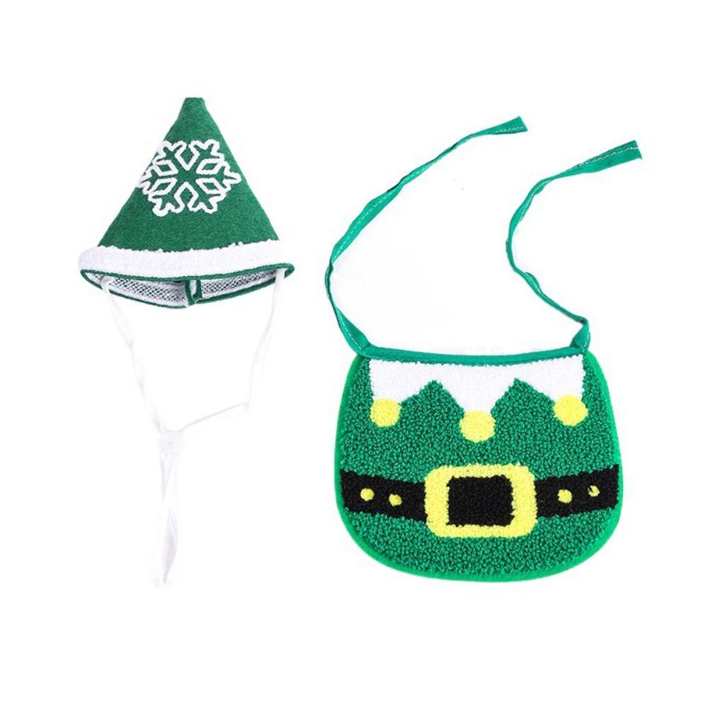 Мягкая Рождественская Шапка для Собак, Мультяшный Рождественский Ошейник для Питомцев, Слюнявчик Санта Клауса для Собак и Кошек S зелёный