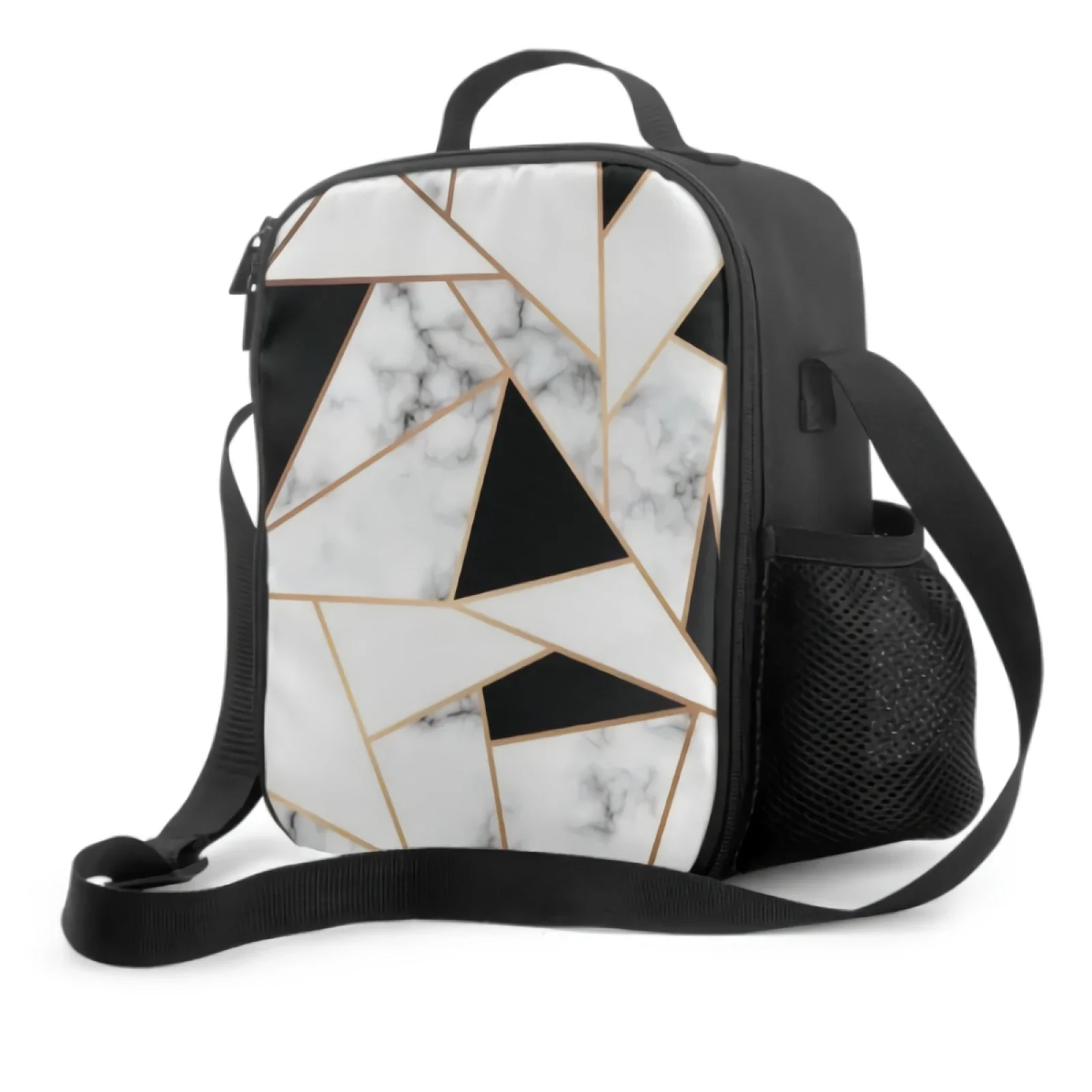 Черно-белое золото, мраморный геометрический узор, изолированная сумка для обеда для школьной работы, офиса, пикника, сумка-тоут, контейнеры для обеда, сумка-холодильник