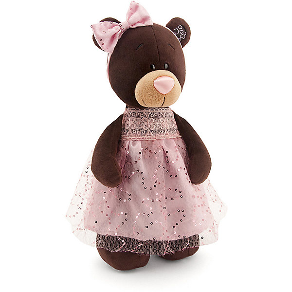 Мягкая игрушка Orange Choco & Milk Мишка Milk стоячая в платье с блёстками, 30 см, Коричневый