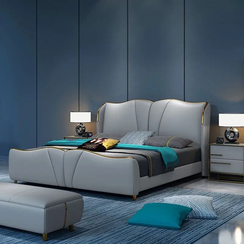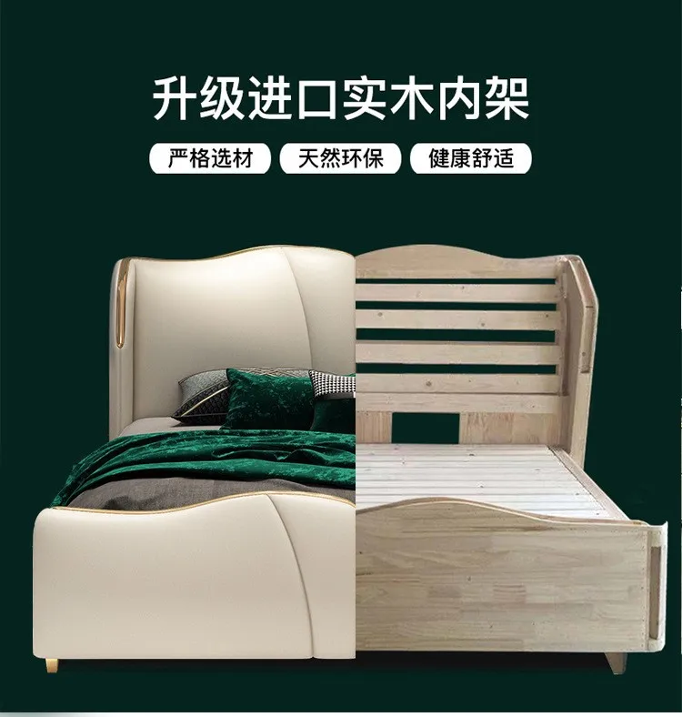 Мягкая кожаная кровать с сумкой, роскошная современная простая кожаная кровать 1,8 м, кровать для хозяйской спальни, большая кровать с сеткой...