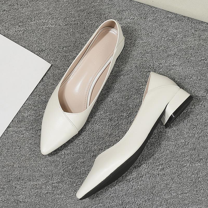 Мягкая кожаная рабочая обувь для женщин, черная, не устаешь стоять долго на работе, рабочая обувь с острым носком и толстым каблуком, одинарная обувь для женщин, верс 41 белый