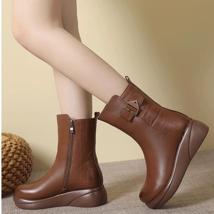 Мягкая кожа, мягкая подошва, плюшевые ботинки, зимние теплые, на платформе, нескользящие, женские полусапоги, Северо-восточные хлопковые туфли, Мамина мода 41 темно-коричневого