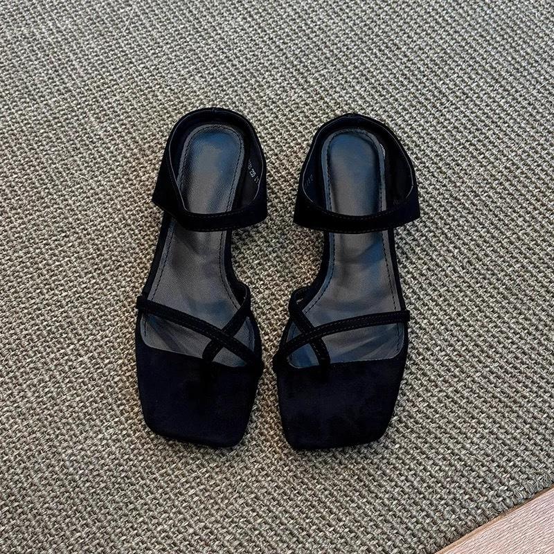 Мягкая кожа простые повседневные закрытый носок надпись с сандалиями женские летние ретро универсальные квадратный носок наклонный каблук для улицы крутые шлепанцы 40 чёрный