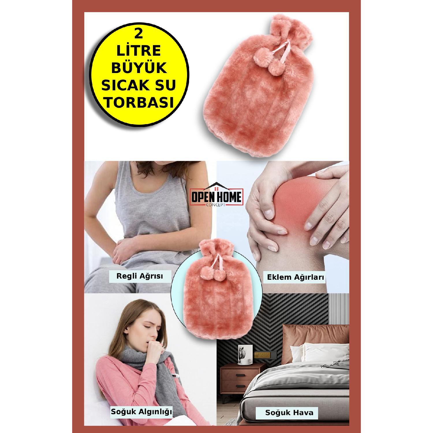 Мягкая плюшевая сумка для горячей воды объемом 2 литра с розовым помпоном