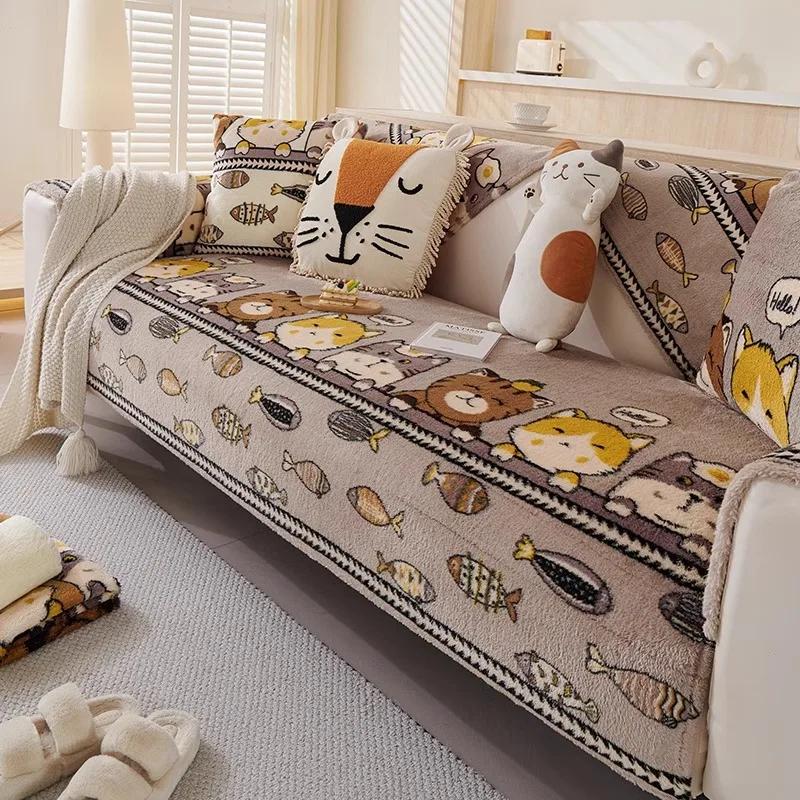 Мягкая подушка для дивана, нескользящая, в мультяшном стиле, фланелевая подушка для сиденья, зимняя, более плотная, теплая, стильная, все включено, чехол для дивана 90x70