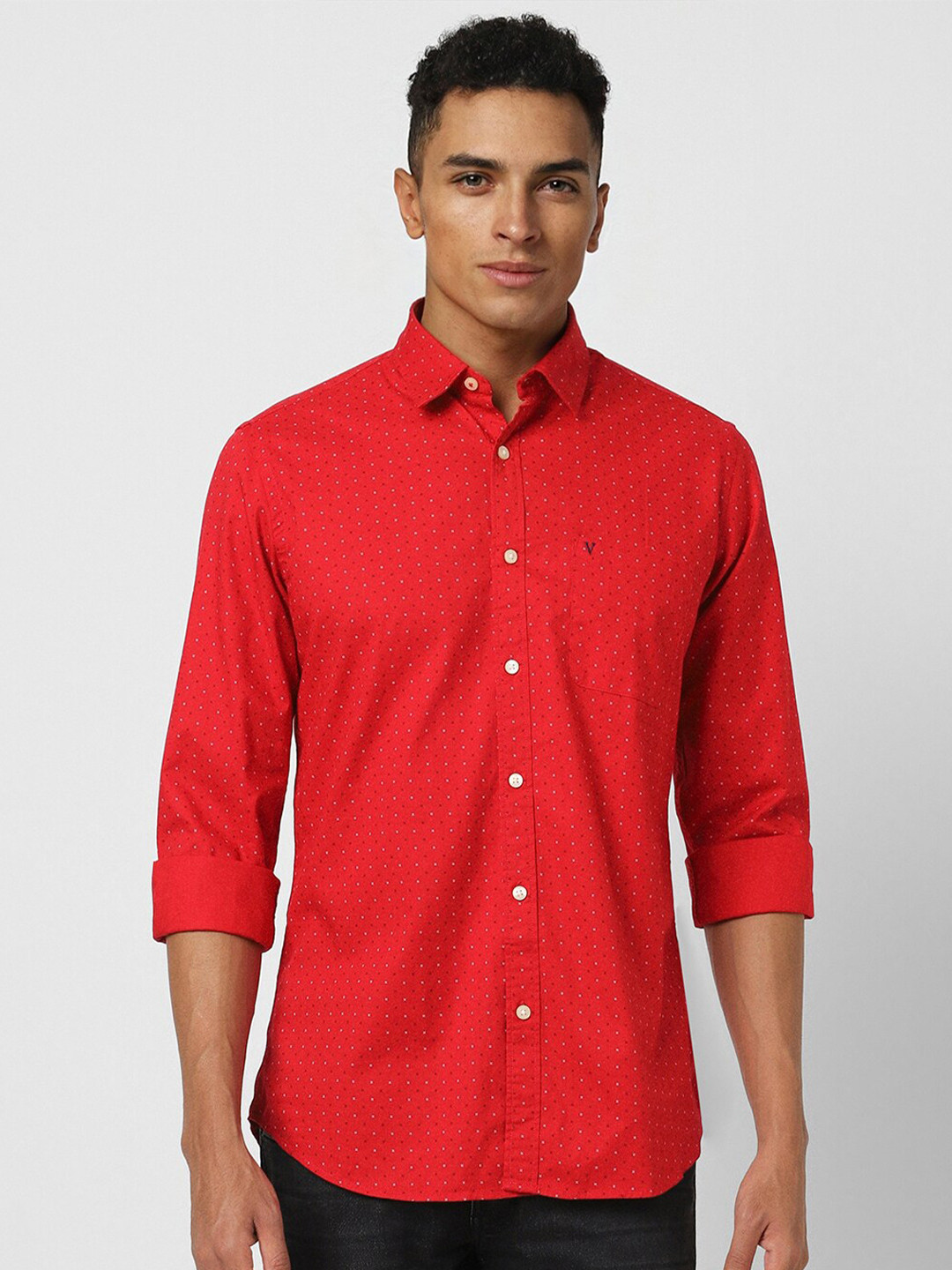 Van Heusen Sport Slim Fit Micro Ditsy Printed Spread Collar Casual Shirt, Red