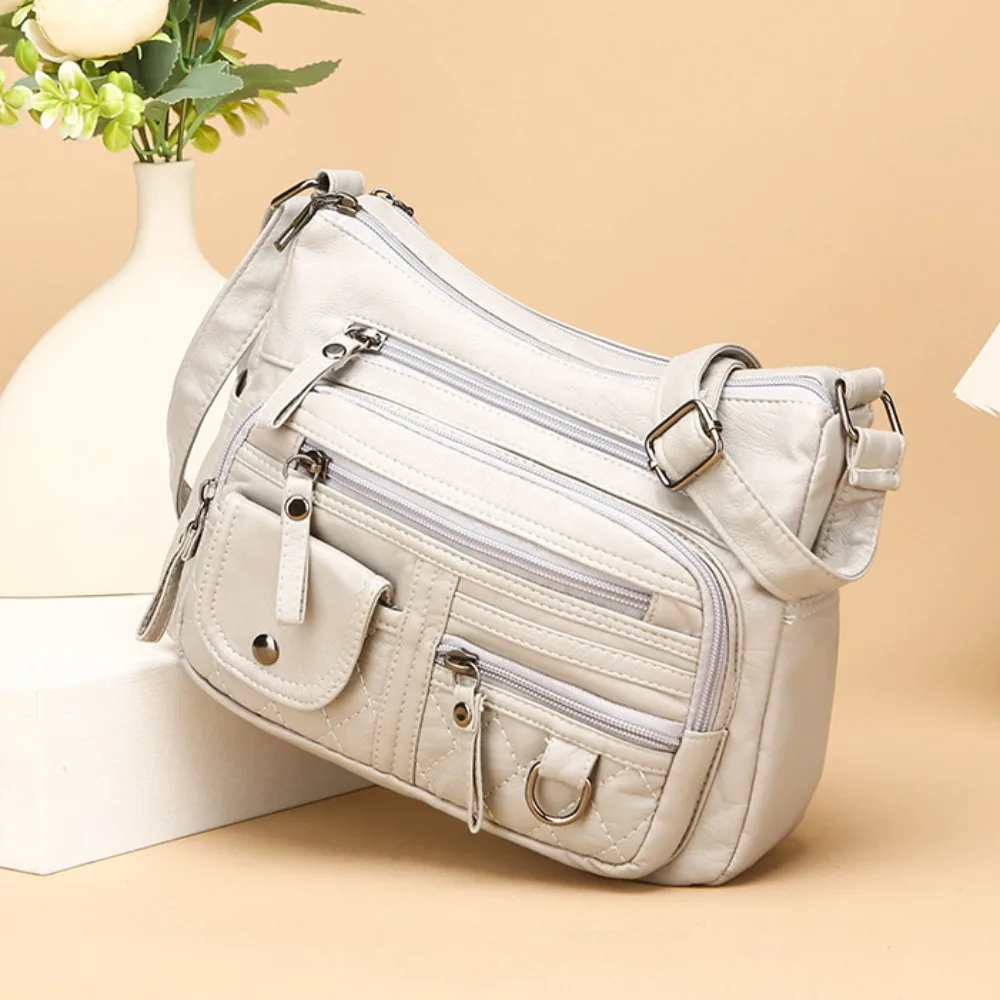 Мягкая сумка через плечо с несколькими карманами на молнии, водонепроницаемая сумка через плечо в стиле ретро, большая вместительная однотонная сумка-мессенджер для покупок