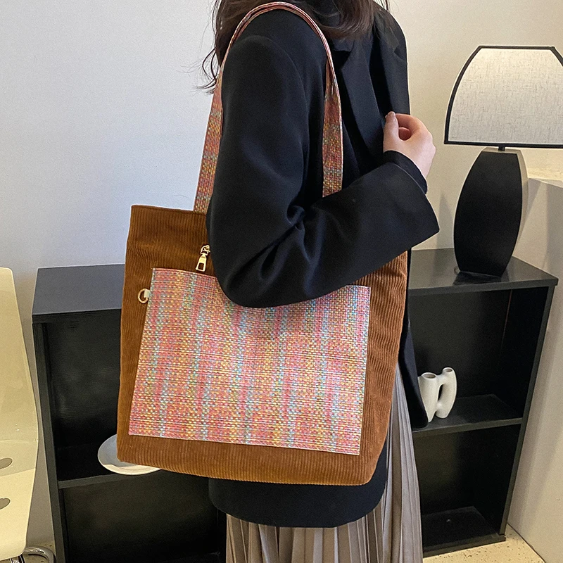 Мягкая ткань, украшение, женская модель 2023, Весенняя сумка через плечо, винтажная большая сумка для покупок, сумки-тоуты на молнии