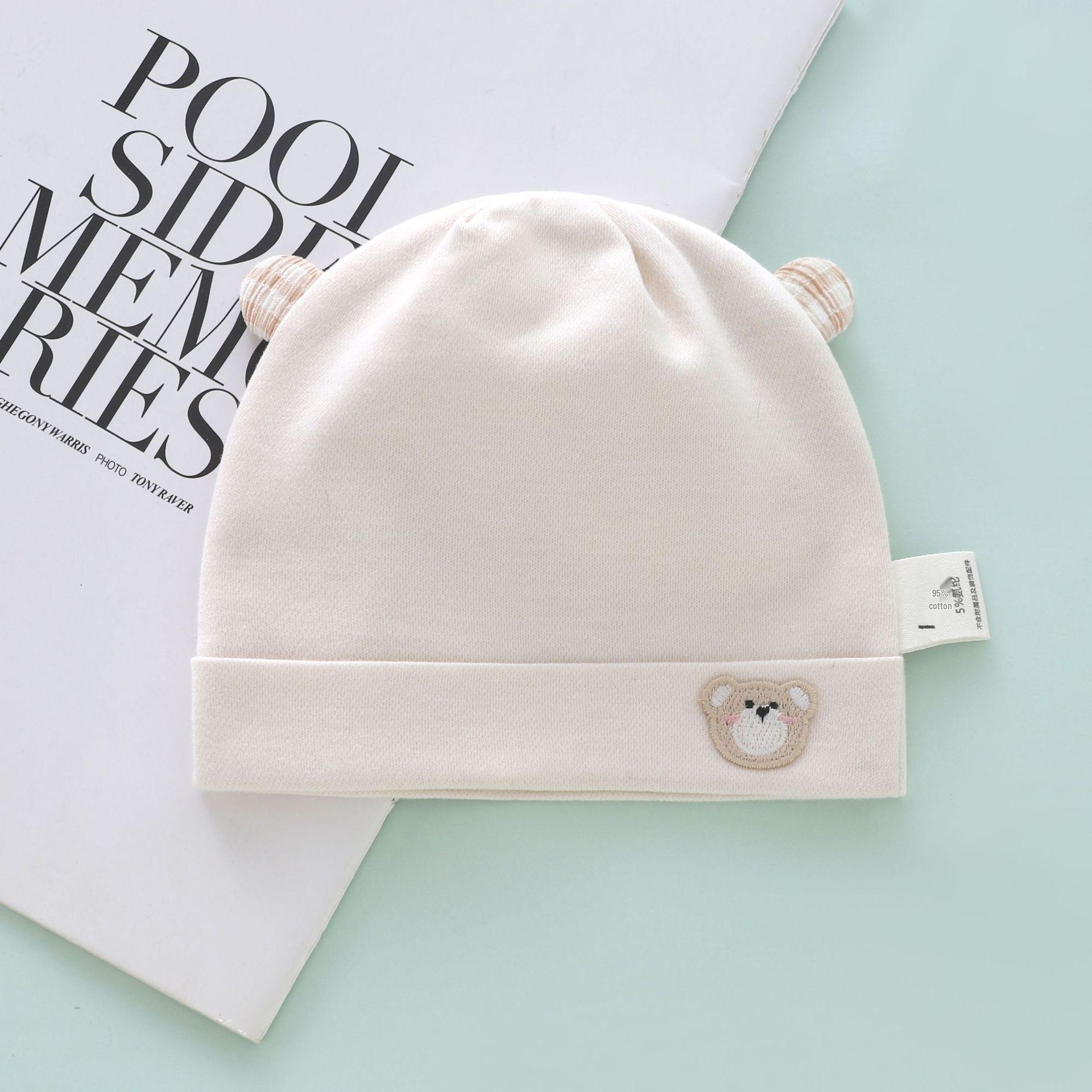 Мягкая хлопковая шапочка для новорожденного - Милая, удобная, одного размера с маленькими ушками жёлтый