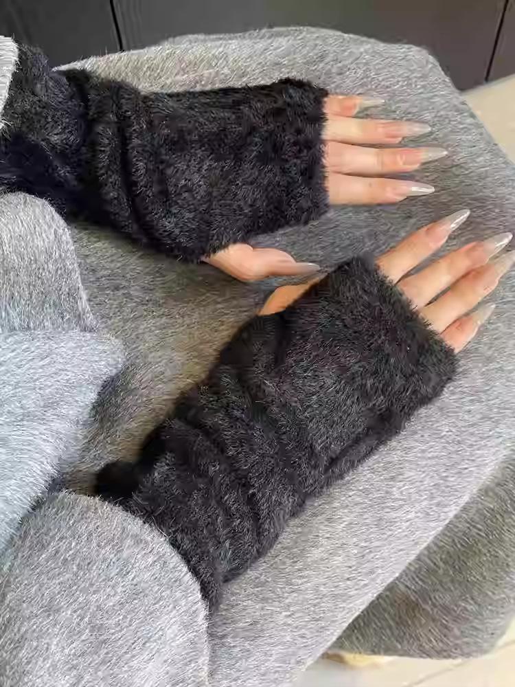 Мягкие Восковые Плюшевые Митенки Женские Плюшевые Теплые Осенне-Зимние Рукава Милые Имитация Кроличьего Меха Японские Длинные Рукава с Открытыми Пальцами чёрный