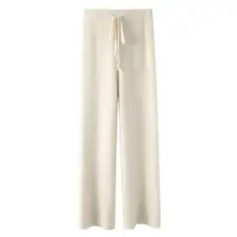 Мягкие конфуцианские вязаные брюки женские для осенне-зимней носки, драпированные вязаные брюки широкого покроя, белые брюки в пол, прямые брюки-облака S