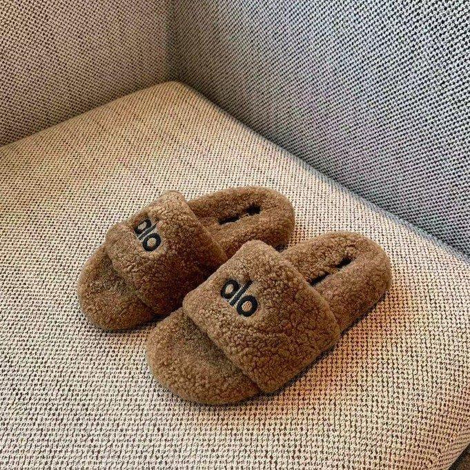 Мягкие тапочки из овечьей шерсти женские 2025 новые для улицы модные универсальные на толстой подошве на одно слово ленивые шерстяные хлопковые тапочки 40 темно-коричневого
