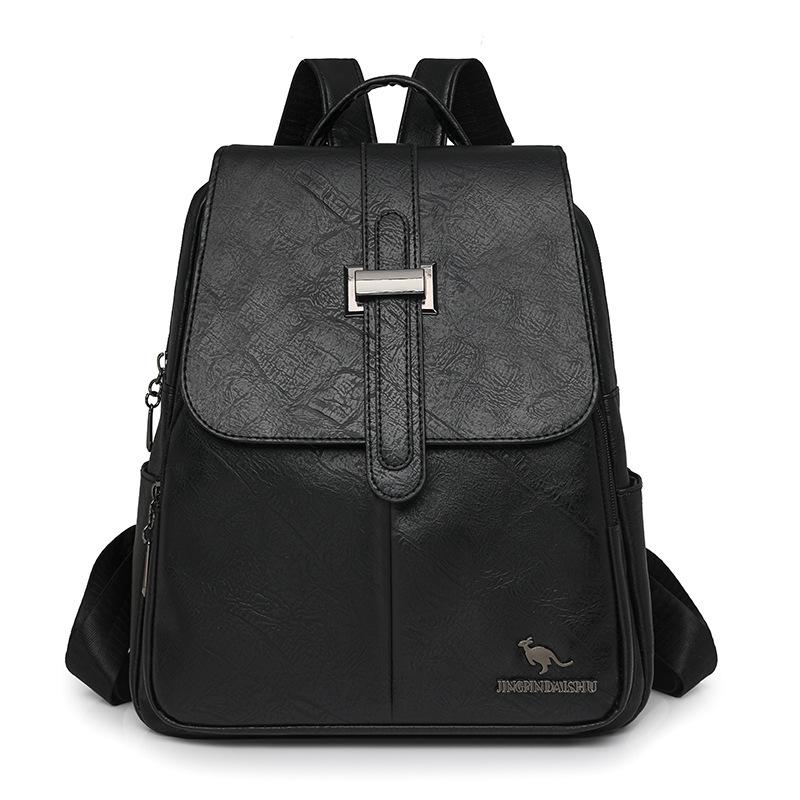 Мягкий кожаный рюкзак Женский рюкзак для поездок Вместительная сумка через плечо чёрный